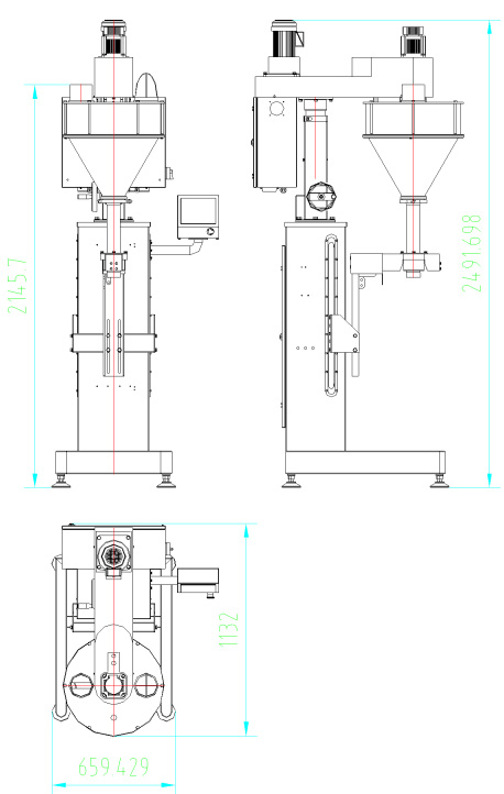 工作流程:人工套袋或人工放罐 → 容器升高 → 快速充填,同時(shí)容器下降 → 重量達(dá)到預(yù)量值 → 慢速充填 → 重量達(dá)到目標(biāo)值 → 人工取出容器。
