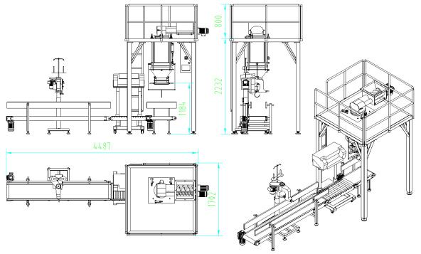 加配皮帶輸送機、縫包機、折邊機或熱合機等可以成為成套包裝系統(tǒng)。